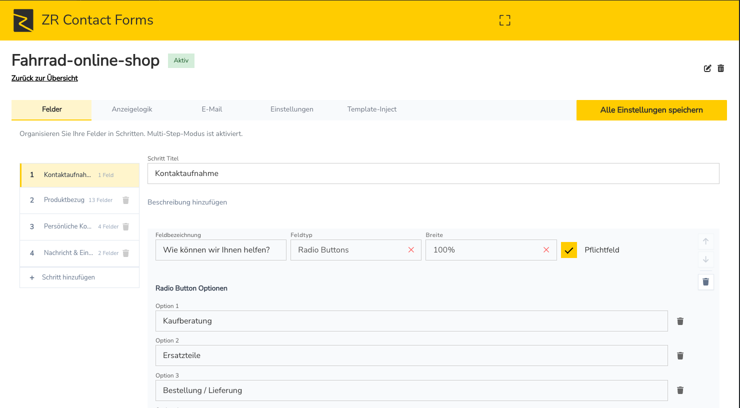 ZR Contact Forms - mehrstufige Formulare mit abhängigen Feldern