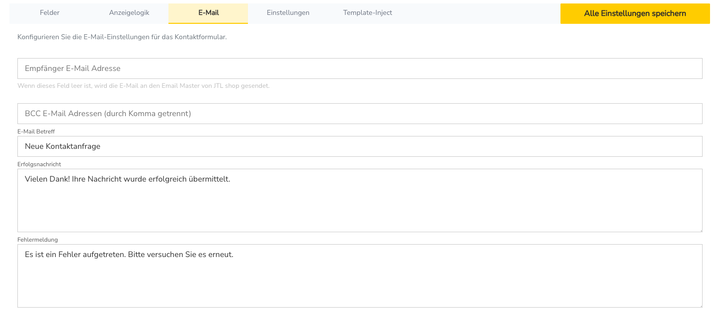 Für einen reibungslosen Versand nutzt das Plugin den internen E-Mail-Mechanismus des JTL Shops inklusive eigener, anpassbarer E-Mail-Templates. Das Ergebnis: professionell aussehende Anfragen, strukturierte Daten und ein deutlich effizienterer Kommunikationsprozess.